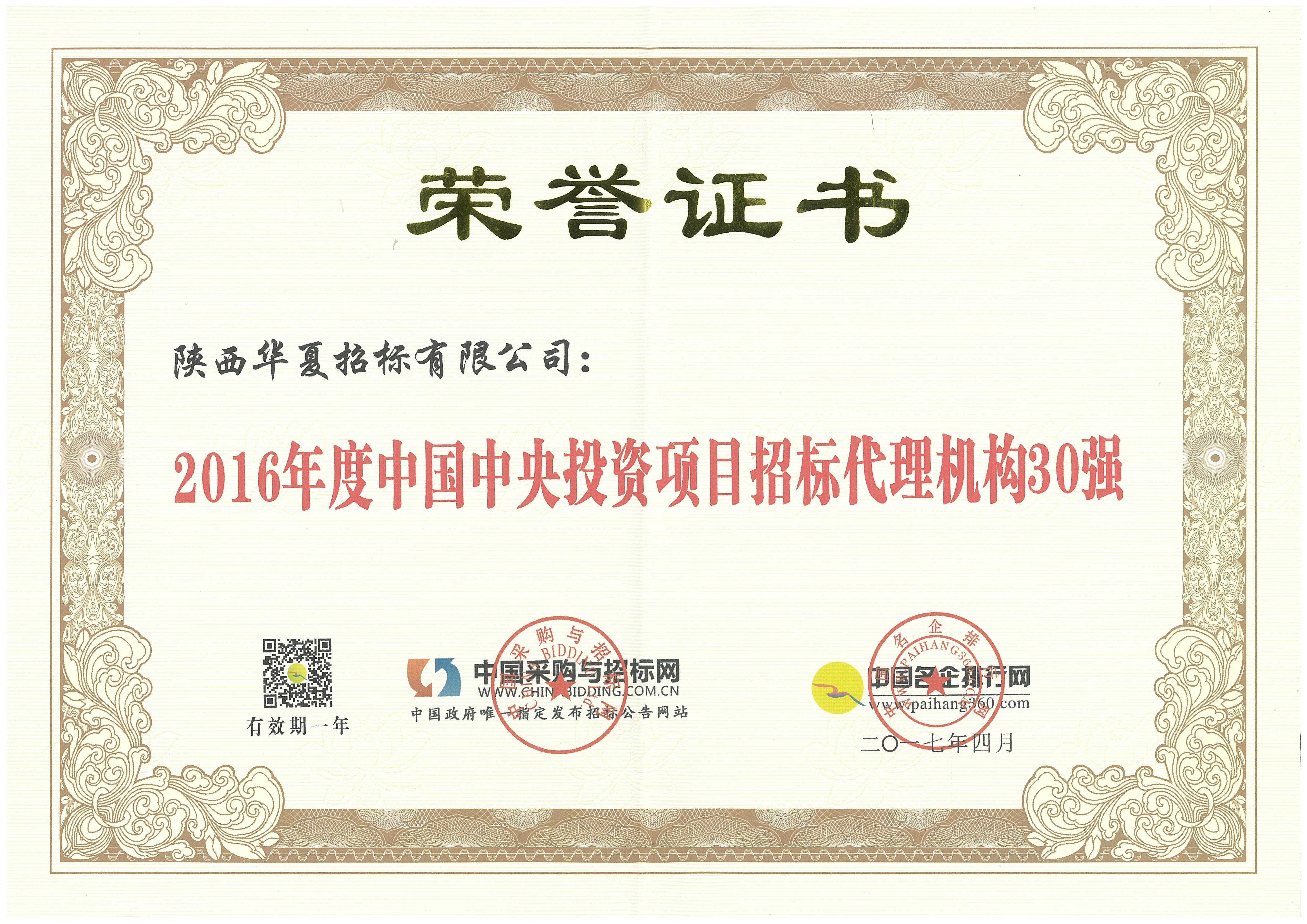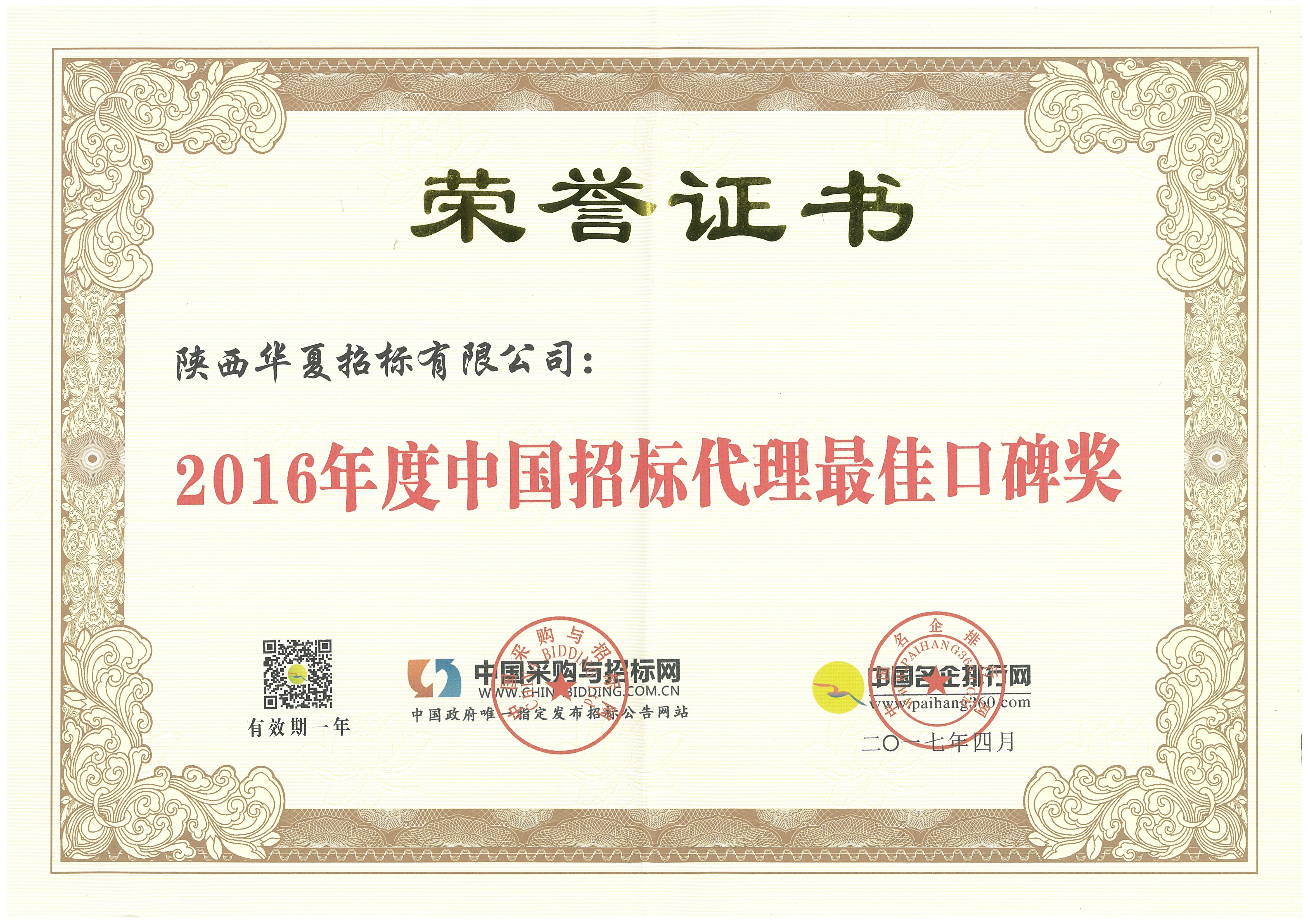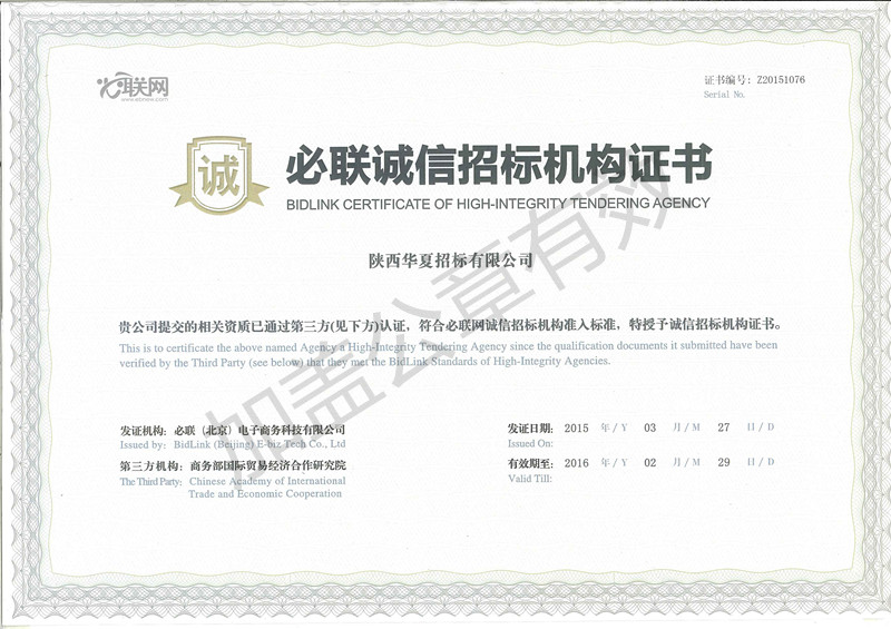 必聯誠信招標機構證書